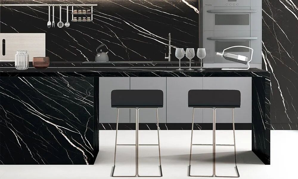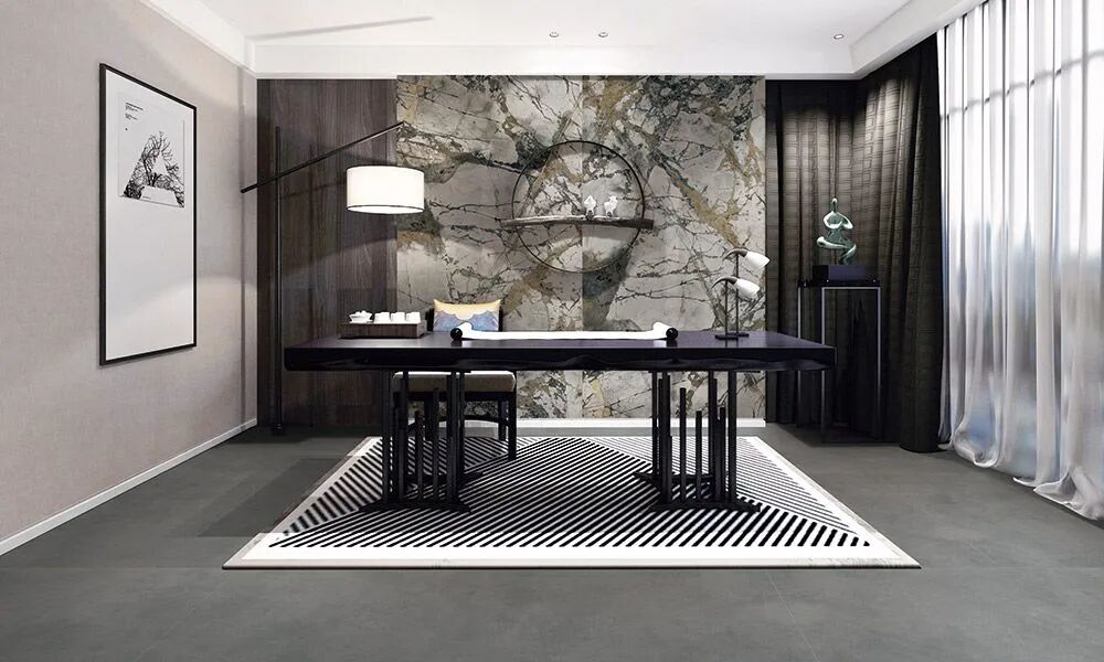 岩板的莫氏硬度高达6级,和天然石材或普通的石英石、木质板材相比,具有超薄质轻、规格大、可塑造性强、花色多样、防污耐用、防火耐高温、零甲醛、绿色环保、施工简单的优点。如今在家装中多用于别墅背景墙装饰、橱柜台面、衣柜面板等等。