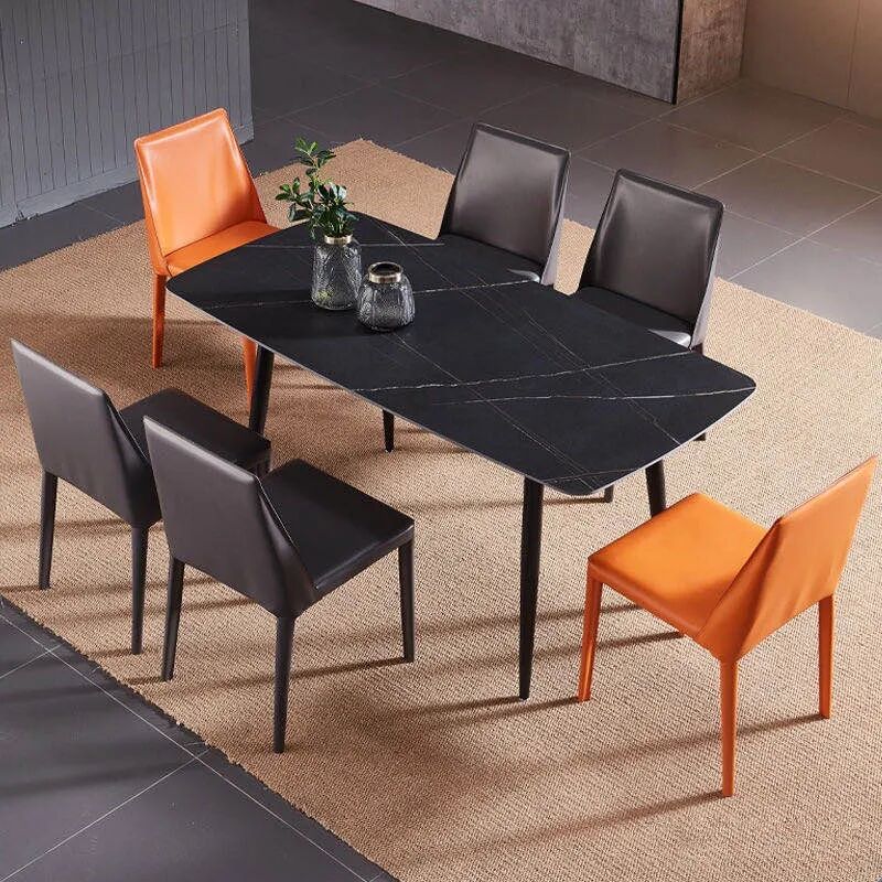 意式艺术,岩板餐桌,岩板不仅继承了花岗岩的硬度,耐高温又抛弃了大理石的厚度,适合应用在餐厅餐桌上,色泽清淡高雅,质感温润,为家增添高雅气息;岩板桌面同样有着环保无甲醛,健康不褪色等优点。