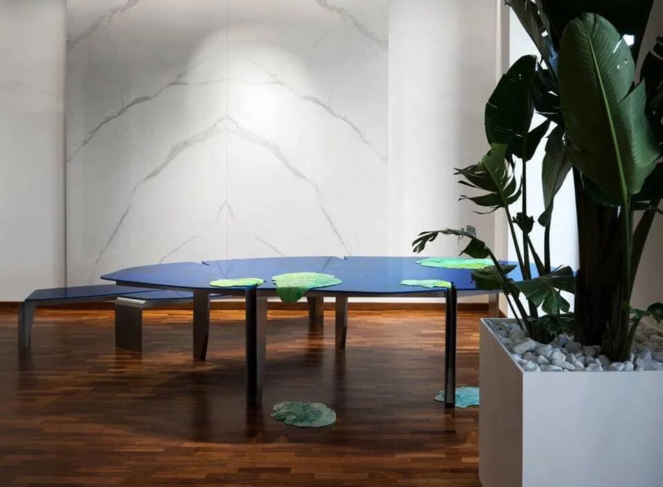 如此这般静谧又魅惑实属少之又少。不仅如浩瀚的大海,更如夜晚的星空一样,深蓝色的夜空中,悬挂着繁星点点,宁静、美丽、神秘、让人忍不住想要去探索。这样的蓝会让我们焦躁的心绪平复下来,去享受生活的乐趣与安排。
