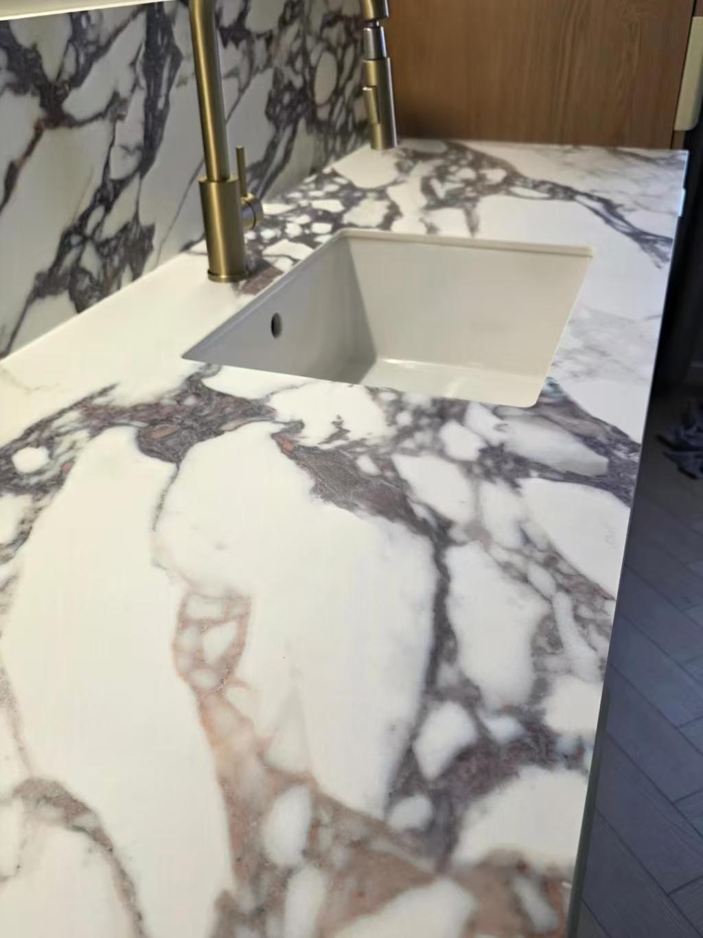 源自意大利宝格丽酒店御用经典奢石「卡拉卡塔紫」,因火山运动与碳酸盐岩变质形成的稀有紫调纹理,以纽约宝格丽酒店的标志性应用而闻名全球,将高端珠宝的奢华基因与天然石材的自然魅力完美融合,赋予空间[敏感词]的高端艺术气质。